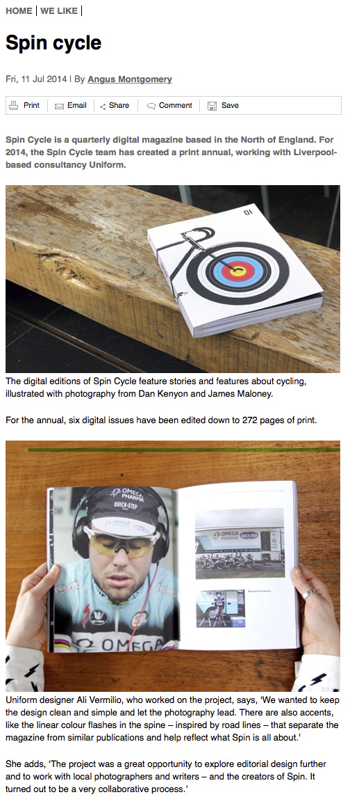 Design Week ran an article on Spin Cycle Annual 01 this week. That's two showings for different projects in Design Week so far this year. I must be doing something right. Don't forget. That annual is still available on the spin website at www.spincyclemag.com.